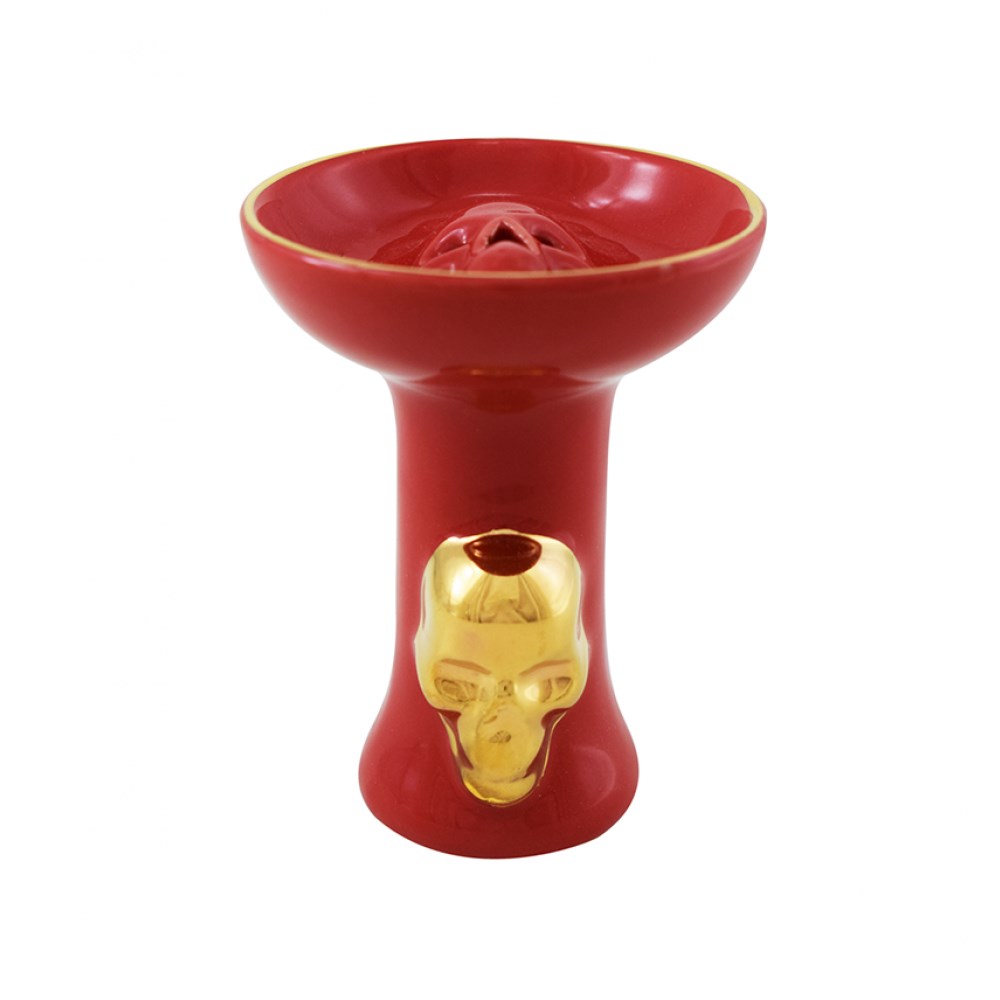O Rosh Hookah Blend Calavera é considerado uma inovação no mercado nacional, com o "pino central" esculpido em 3D, tem o formato de caveira na parte interna da cuba. No corpo do rosh temos também em 3D outra caveira, com detalhes em dourado, deixando com um estilo refinado e elegante. Este rosh é produzido em porcelana, material com aquecimento rápido e antecipa o início da sessão. Suas dimensões de encaixe foram desenvolvidas para ser versátil e encaixar facilmente nos narguiles.
